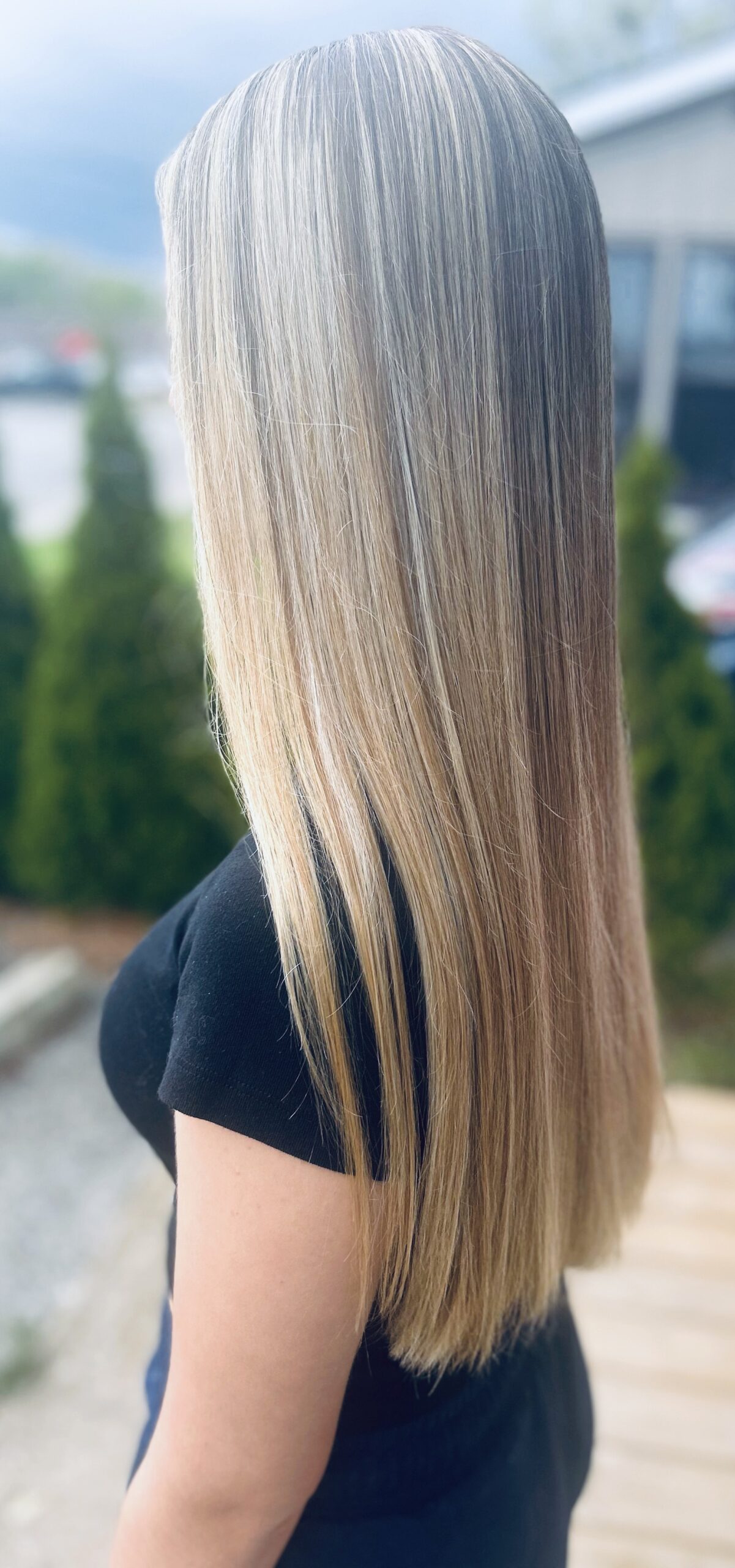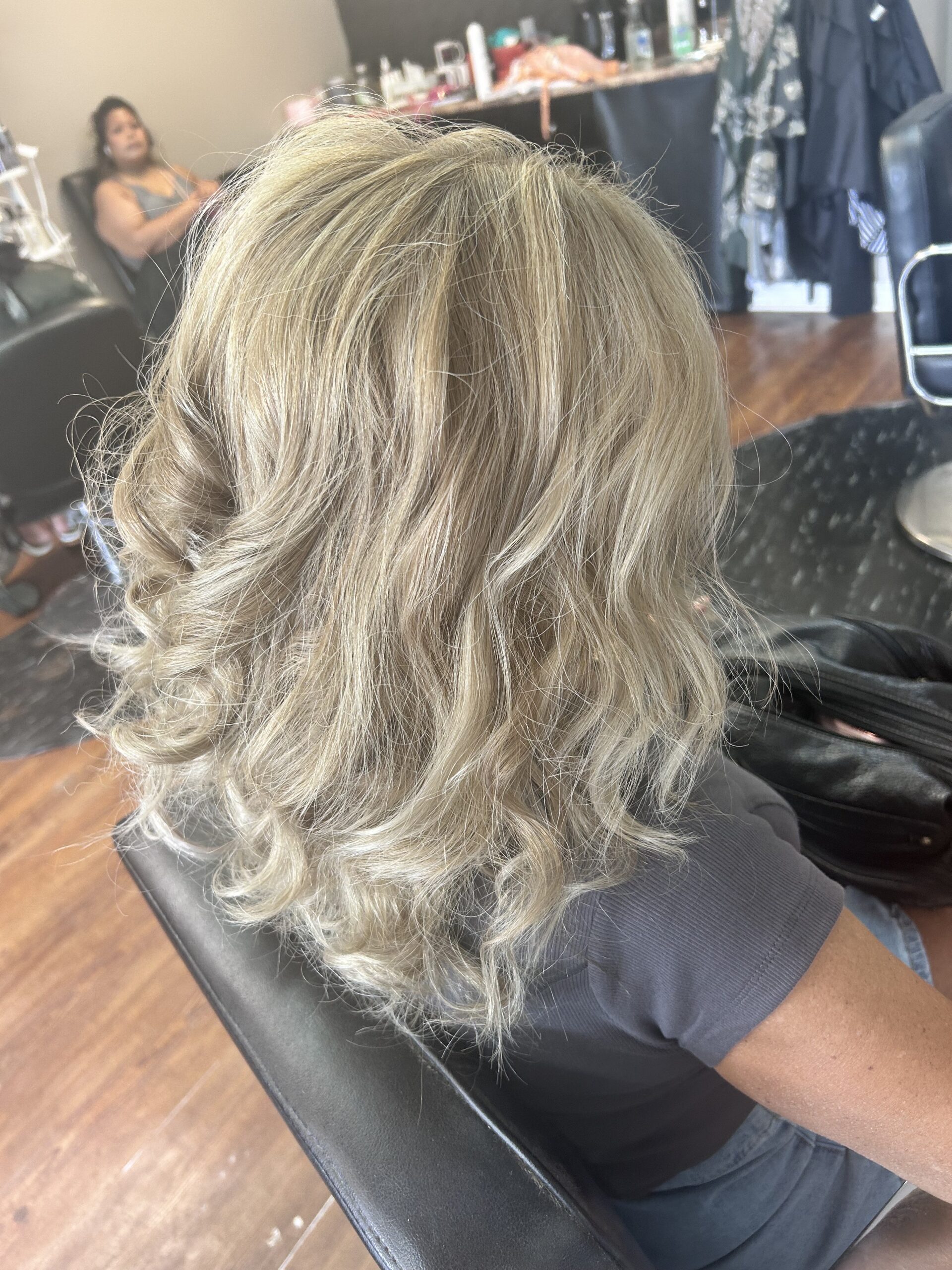 I went and seen Tricia to get my hair colored, I have been attempting to go blonde for quite some time and have had issues achieving the blond I wanted, usually it ends up a yellow. My base color at this time was also a brown. Tricia not only removed all brass, but lifted me from the brown to a lovely grey/white without damaging my hair. I was super happy with the results, and loved that she walked me through each step. The conversation and company was great too! Prior to this she did my daughter’s haircut and my daughter walked away so happy and continues to love it!