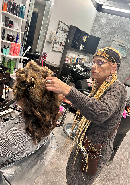 With over 40 years of experience, Patricia Dobbs is a globally trained hairstylist specializing in colour, texture, and healthy hair practices. Her journey began humbly in high school, cutting hair for lunch money, and quickly evolved into a passion that led her to geometric hair training in Toronto. She apprenticed in the elite salons of Yorkville before opening her own salon at just 21 years old.